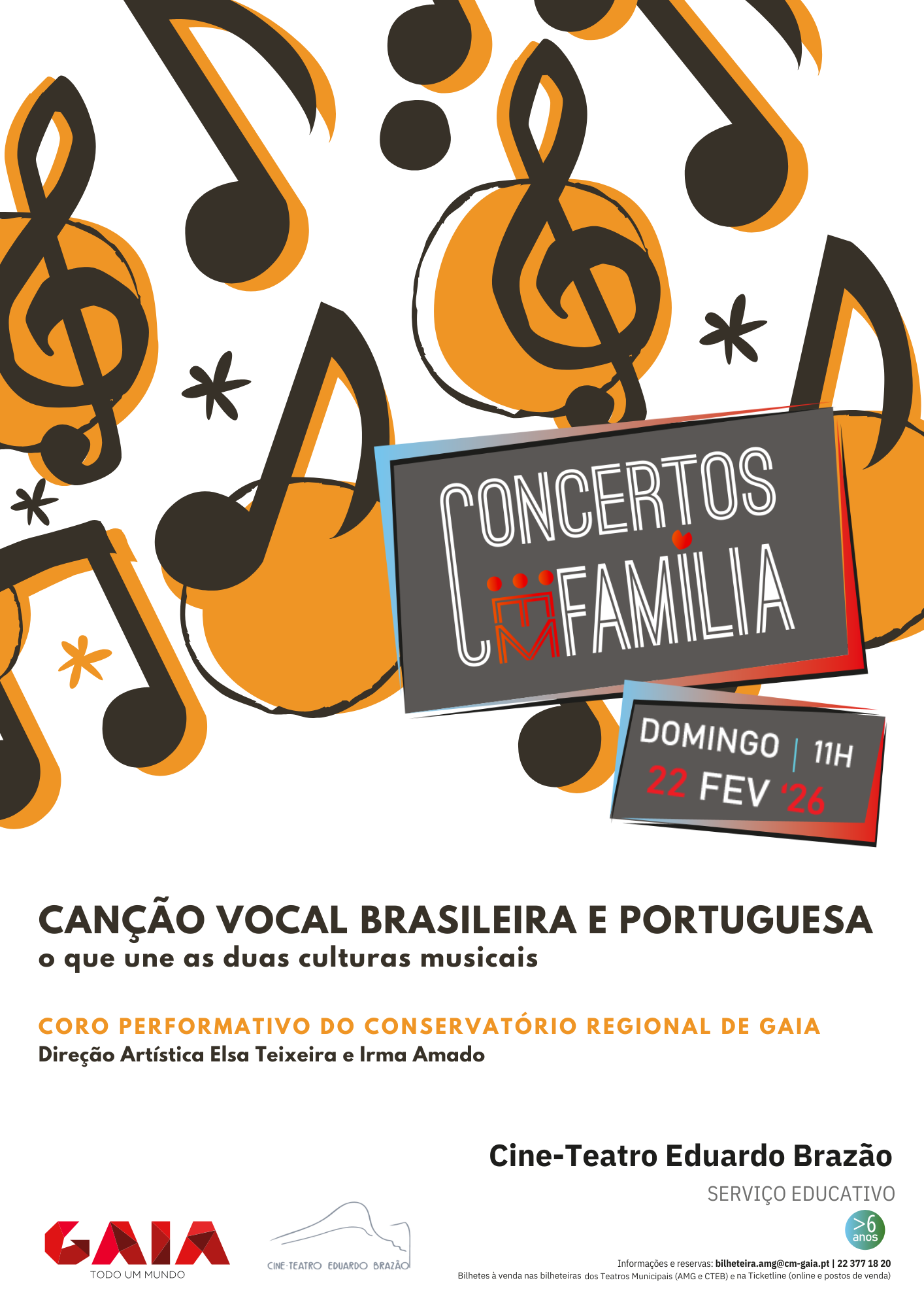 Em fevereiro, o Coro Performativo do Conservatório Regional de Gaia, dirigido por Elsa Teixeira e Irma Amado, participa no "Concertos em Família", invocando as fortes ligações musicais entre Portugal e Brasil.